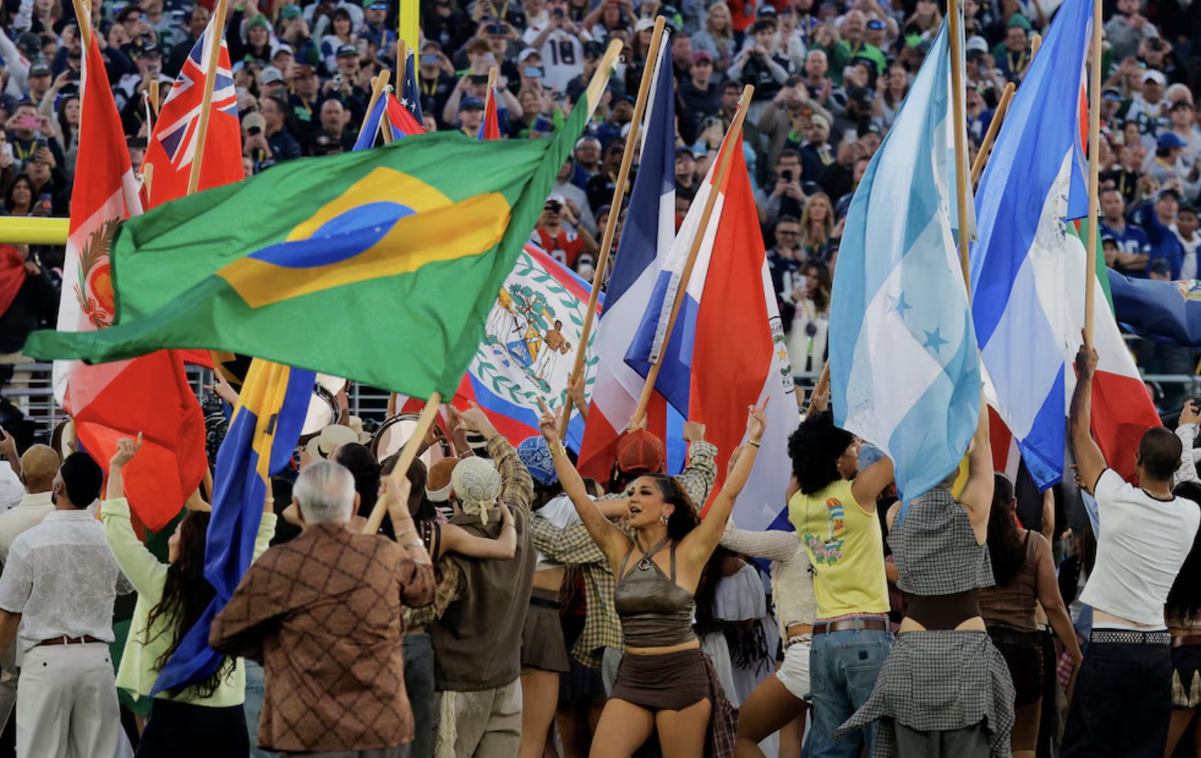 El Levi’s Stadium de Santa Clara fue testigo de una presentación sin precedentes encabezada por Benito Antonio Martínez Ocasio. El cantante inició su intervención con un mensaje de orgullo cultural mientras recorría una puesta en escena que simulaba un sembradío latinoamericano. Durante el evento, se integraron colaboraciones destacadas con Cardi B y Karol G, además de apariciones de personalidades como Pedro Pascal y Jessica Alba. La propuesta visual mezcló elementos grabados con acciones en vivo sobre el césped, consolidando la presencia de la música en español en el evento deportivo más relevante de Estados Unidos.
