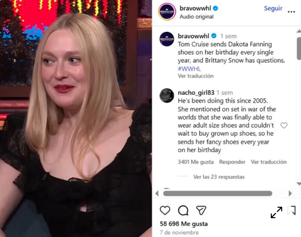 Todo comenzó en 2005, cuando una Dakota de apenas 10 años compartió créditos con Cruise en La guerra de los mundos de Steven Spielberg. Ella daba vida a Rachel Ferrier, la hija valiente de Ray (Cruise), en una trama apocalíptica que forjó un lazo casi paternal entre ambos. Desde entonces, cada año, sin falta, Cruise envía un par de zapatos a la medida perfecta. En su aparición en Watch What Happens Live con Andy Cohen el 6 de noviembre, Fanning disipó los rumores con una sonrisa: “Sí, lo hace. Son unos zapatos muy bonitos… Él siempre me regala zapatos… Son zapatos bonitos”. Y no es exageración: el astro acierta con el número exacto, año tras año, demostrando una atención al detalle que va más allá de lo profesional.