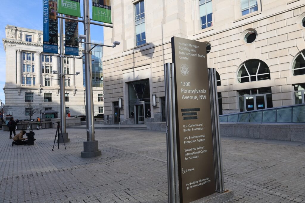 El letrero y los logos de las oficinas de la Agencia de Estados Unidos para el Desarrollo Internacional en Washington fueron retirados este viernes después de que el presidente de EE.UU., Donald Trump, ordenara su desmantelamiento.