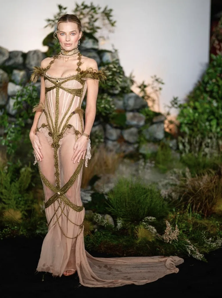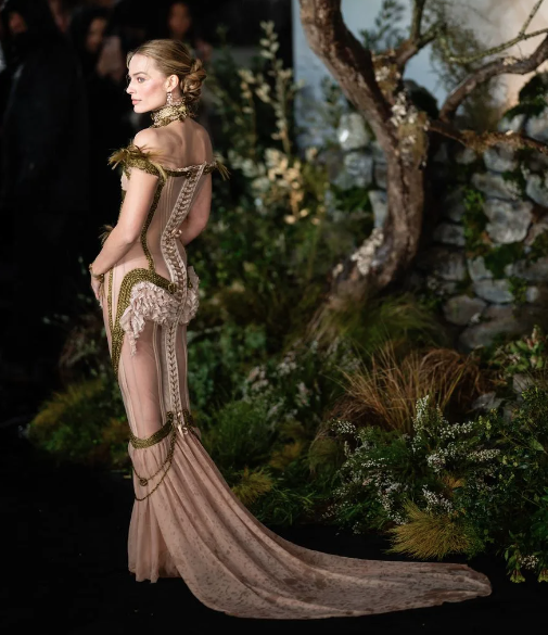 Margot Robbie ha vuelto a paralizar la industria de la moda durante el estreno de su nueva película, Cumbres Borrascosas, en el Odeon Luxe de Londres. La actriz australiana asistió al evento luciendo un diseño personalizado de Dilara Findikoglu que destaca por su estética de romance gótico, compuesto por un corsé transparente y detalles de cuerdas.