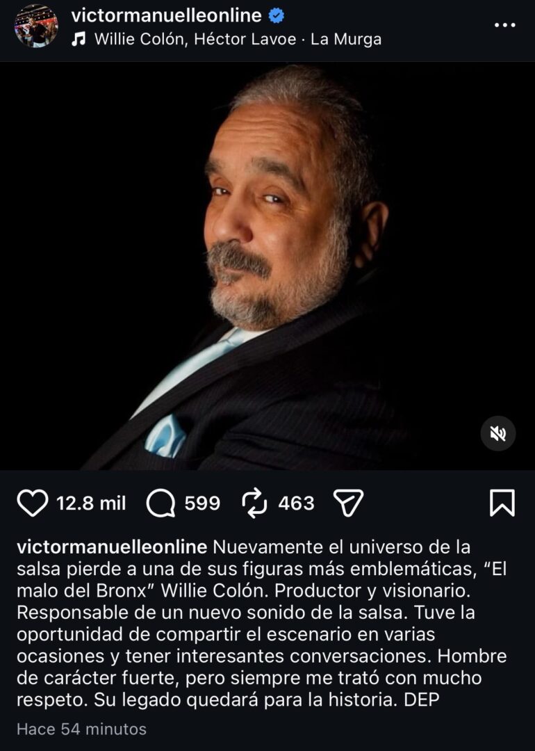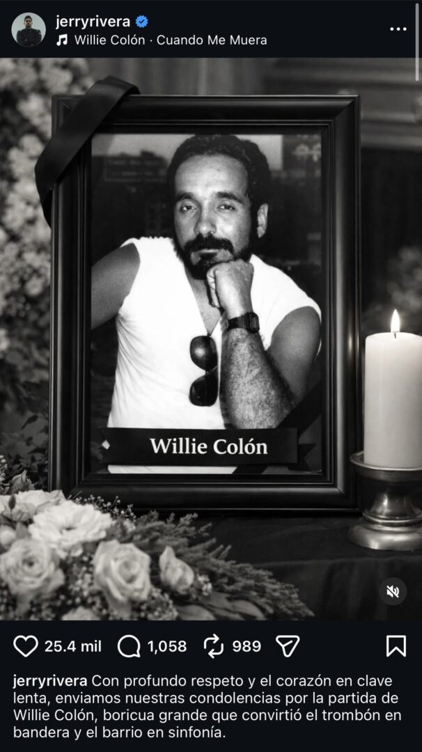Figuras de la salsa reaccionaron con dolor: Víctor Manuelle lo llamó “visionario” y “responsable de un nuevo sonido”. Willie González destacó su legado como “gigante” e “inspiración”. Jerry Rivera recordó cómo convirtió “el trombón en bandera y el barrio en sinfonía”.