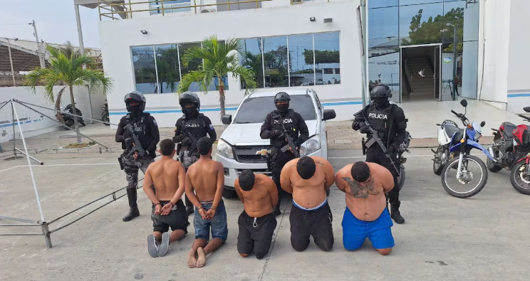 Tras una persecución que culminó en el sector del IESS, la Policía Nacional abatió a José M. L., de 24 años, y detuvo a otros cuatro adultos, dos de ellos heridos en el enfrentamiento, además de aislar a dos menores de edad de 16 y 17 años. Entre los capturados se encuentra Diego M. M., de 33 años, quien registra antecedentes penales por robo. Durante los operativos y allanamientos posteriores, los uniformados incautaron dos armas de fuego, la camioneta utilizada para el asalto, tres motocicletas (incluida una perteneciente a un agente) y cuatro terminales móviles.