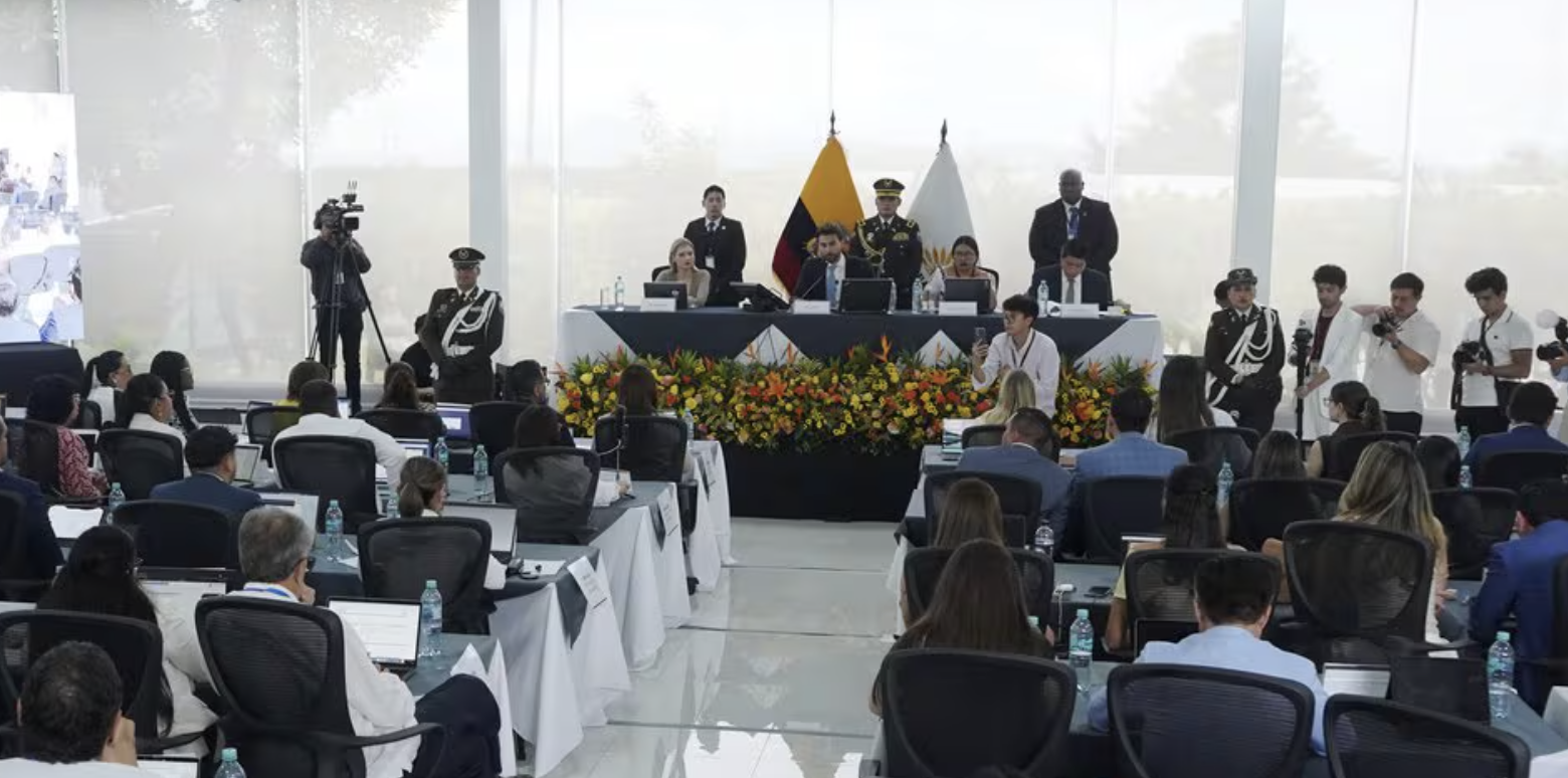 Este viernes 20 de febrero de 2026, el ambiente político en la provincia del Guayas se trasladó a los exteriores de la Universidad Ecotec, en Samborondón. Más de un centenar de personas se movilizaron para expresar su rechazo a la agenda legislativa impulsada por el Ejecutivo, que incluye el tratamiento de la Ley Orgánica para el Fortalecimiento de la Minería y Energía, así como reformas al Cootad. La protesta, que cuenta con un fuerte resguardo policial y militar, se desarrolla de forma pacífica mientras el presidente de la Asamblea, Niels Olsen Peet, instala la sesión para debatir estas normativas de carácter urgente.