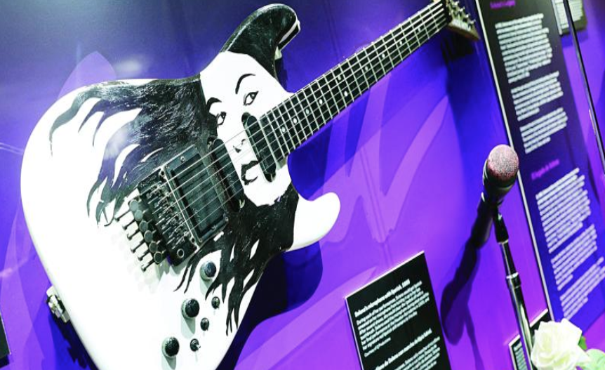 • Instrumentos musicales de la familia, incluyendo la batería de Suzette, el bajo de A.B. Quintanilla III y las guitarras de Chris Pérez, que subrayan el éxito colectivo de Selena y Los Dinos.